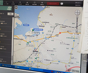 路線バス及び高速バスの位置情報を運行管理者が把握しつつ、乗務職からの緊急要件に対し迅速に応対できるようにIP無線を設置しています。乗務職の安心=お客様の安心を目指します。