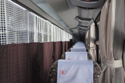 −左側列の座席間(水色のライン部分)に抗菌・抗ウイルスカーテンを順次設置いたします。
